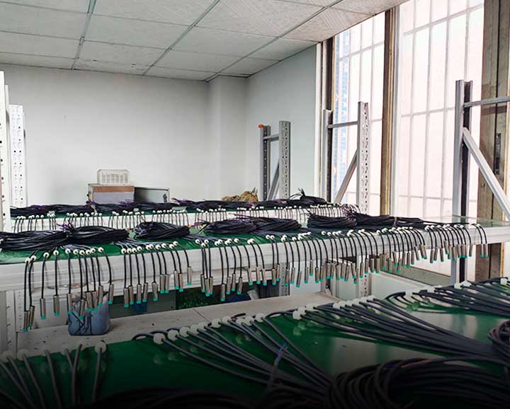 公司現有員工近100人,高級技術研發人員10人,廠房面積4000余平米,擁有先進的全自動化SMT貼片車間,配備高速進口貼片機、AOI檢測儀,另外擁有全自動裁線機、光學自動標定設備、激光打標機、產品組裝線、產品灌脂車間、高低溫老化測室、耐折彎測試機、抗干擾測試室等系列生產制造設施。